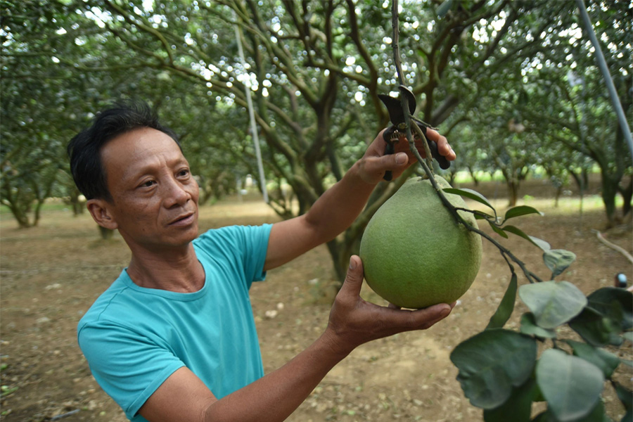 Anh đã căn cứ vào các tiêu chí vườn mẫu để chăm sóc, cải tạo lại vườn của mình. Vườn bưởi của gia đình anh trồng đúng kỹ thuật, hằng năm đều thực hiện tỉa cành, tạo tán. Anh sử dụng hệ thống tưới nước tự động, tưới phun tại gốc giúp tiết kiệm nước, nhân công.