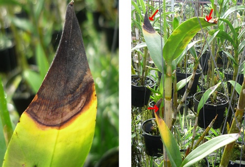 Khi phát hiện lá cây bị đổi màu hoặc lốm đốm (có màu kem, vàng, nâu hoặc đen), đừng tiếc công chăm sóc lan, hãy dùng kéo cắt những chiếc lá, cành và hoa bị nhiễm bệnh. Trong một số trường hợp, có lẽ tốt nhất là loại bỏ cây bị nhiễm để khỏi lây lan bệnh cho các cây khác.