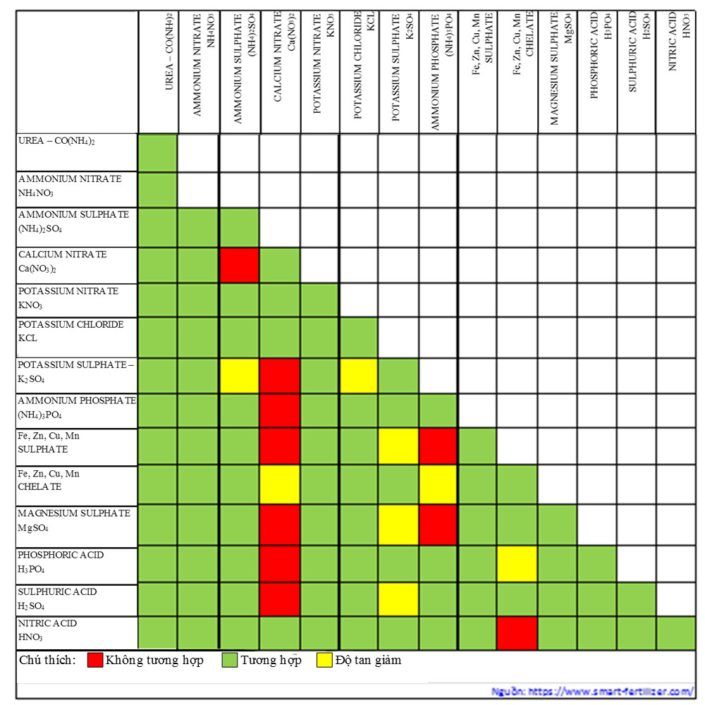 Ngoài ra các bạn có thể theo dõi sơ đồ tính tương hợp các loại phân tại bảng sau: