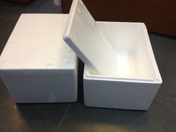 - Thùng xốp có nắp với kích thước: Dài 60cm, rộng 45cm, cao 40cm. Bà con có thể tìm mua dễ dàng ở các cửa hàng hoa quả.